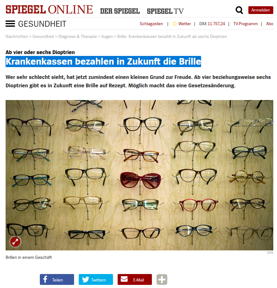 Gestern, eine interessante Pressemitteilung, zum Thema: wieder Brillenzuschuss von der Krankenkasse. Der Gesetzesentwurf muss nur noch verabschiedet werden.